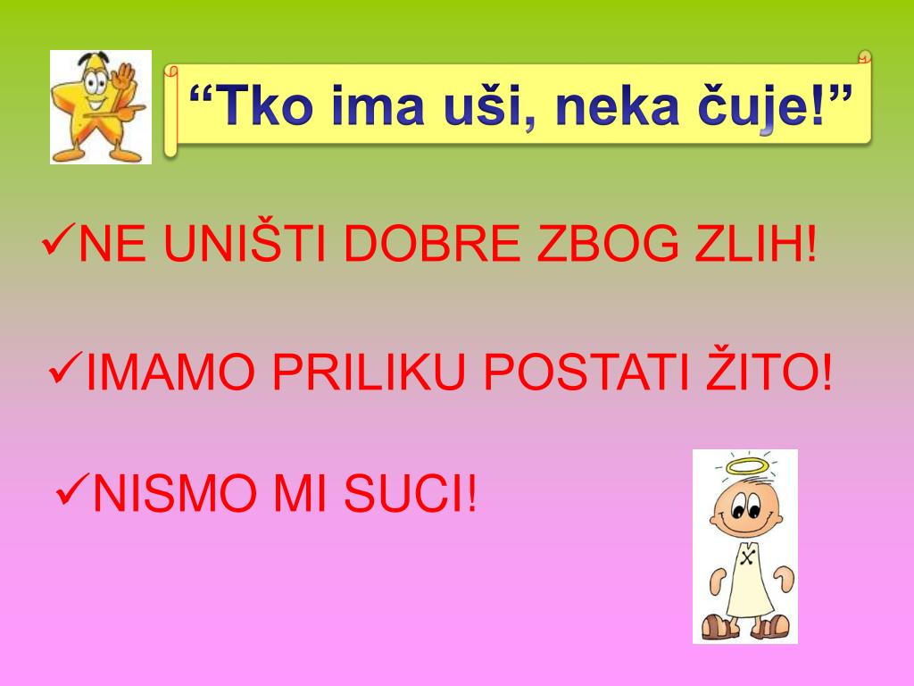 “Tko ima uši, neka čuje!” • NE UNIŠTI DOBRE ZBOG ZLIH! • IMAMO PRILIKU POSTATI ŽITO! • NISMO MI SUCI!