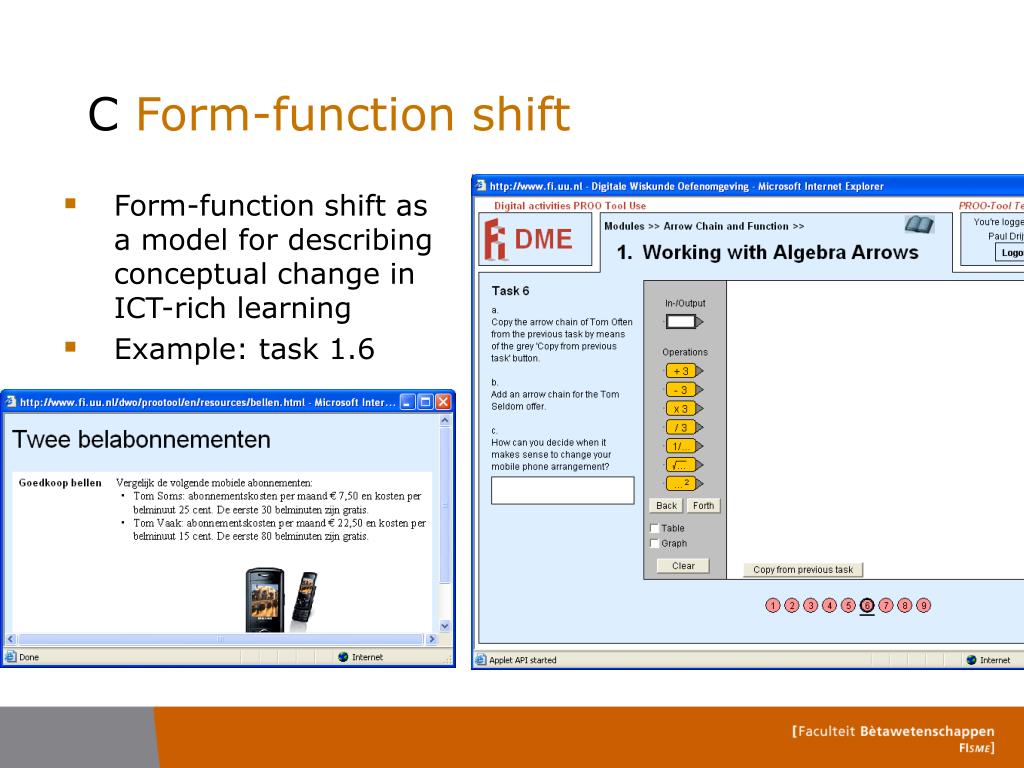C Form-function shift • Form-function shift as a model for describing conceptual change in ICT-rich learning • Example: task 1.6