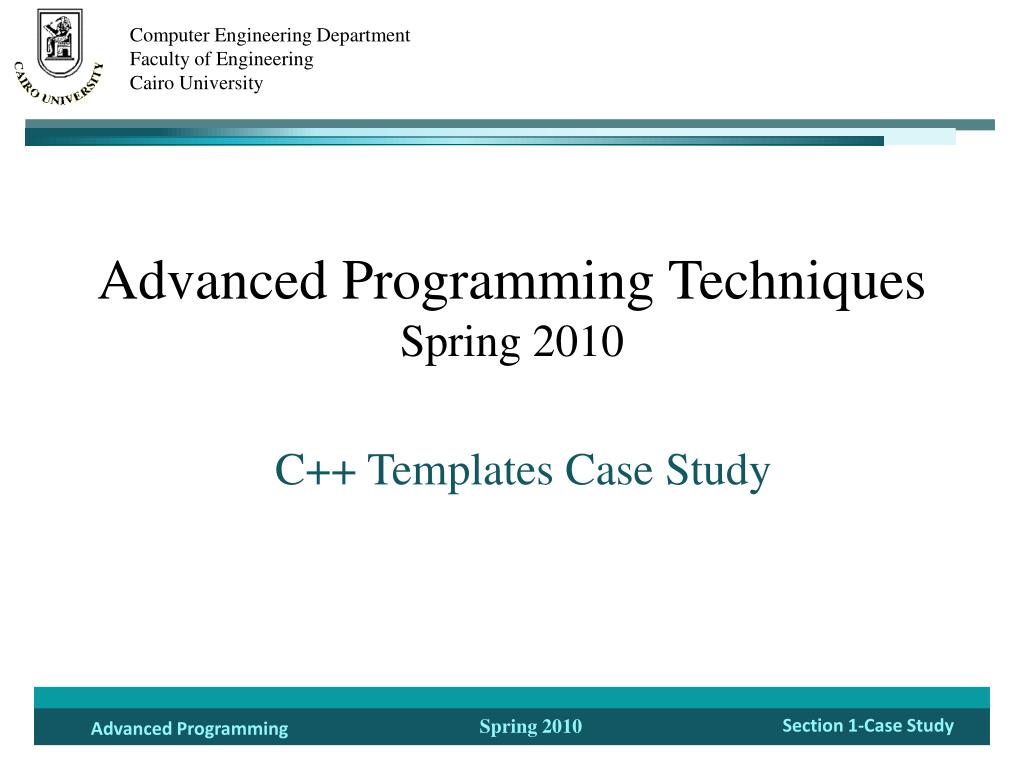 Advanced Programming TechniquesSpring 2010 C++ Templates Case Study