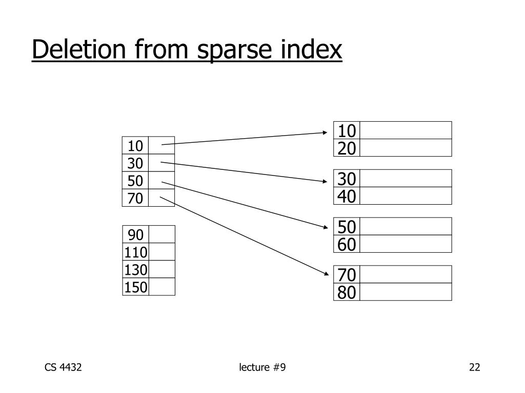 10 30 50 70 80 20 40 60 Deletion from sparse index 10 30 50 70 90 110 130 150 lecture #9
