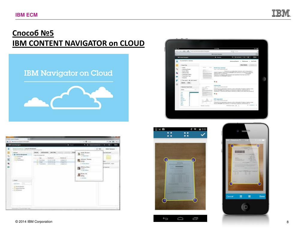 Способ № 2Готовые «коробочные» решенияна базе платфомы IBM ECM • Обратить внимание на:Масштабы и целесообразность доработкиНаличие ограничений на дальнейшее развитиеСтоимость сопровождения