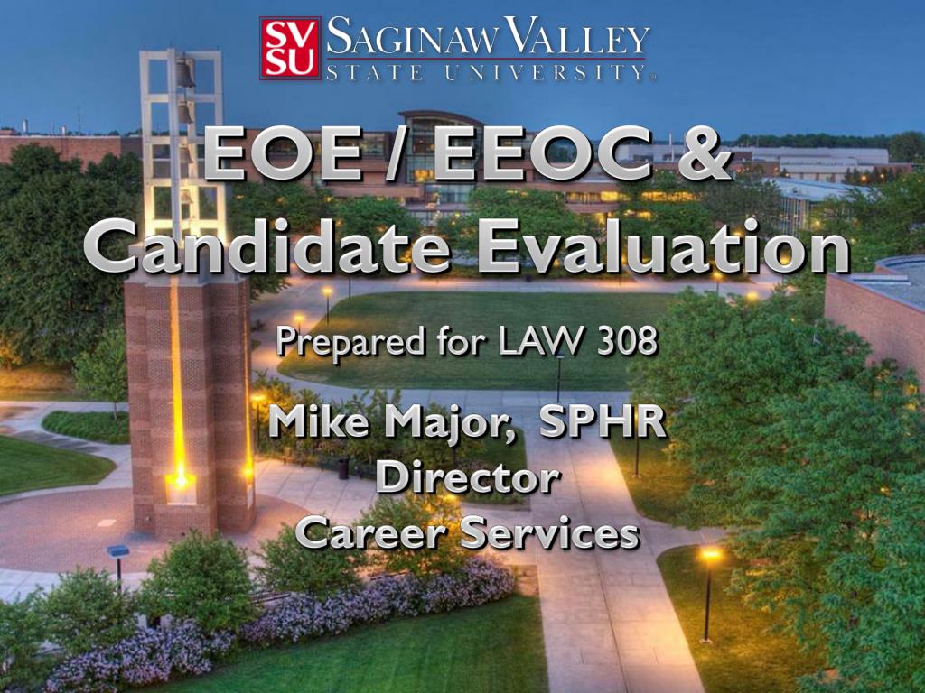 EOE / EEOC & Candidate Evaluation Prepared for LAW 308 Mike Major, SPHRDirectorCareer Services