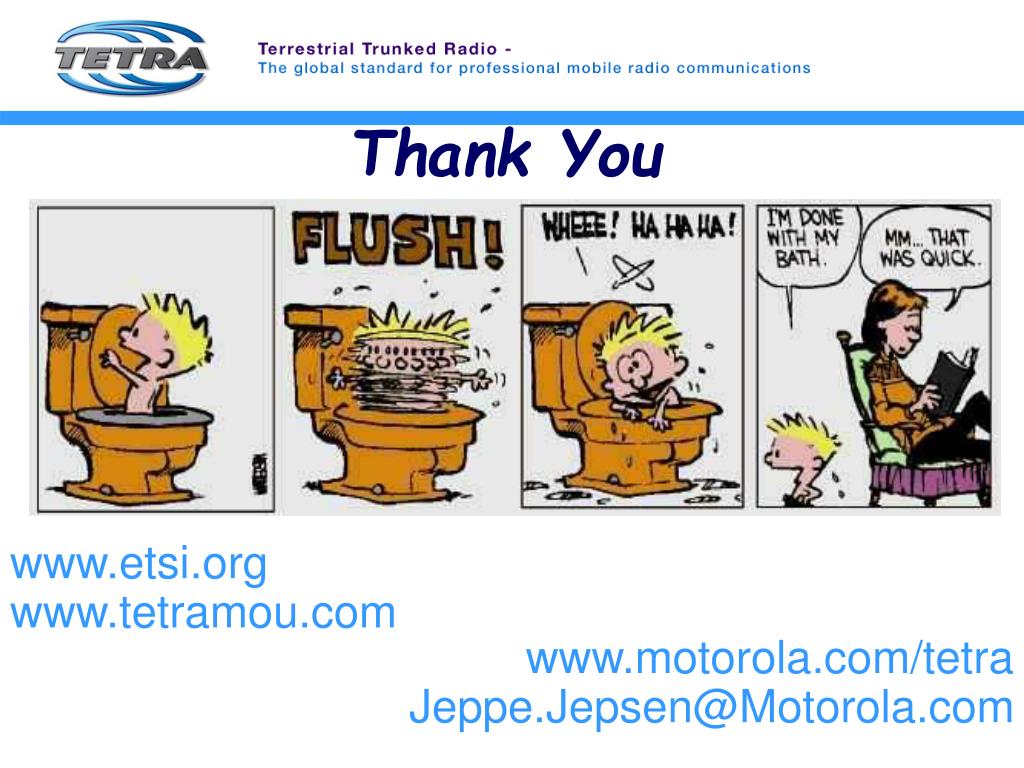 Thank You www.motorola.com/tetraJeppe.Jepsen@Motorola.com www.etsi.orgwww.tetramou.com