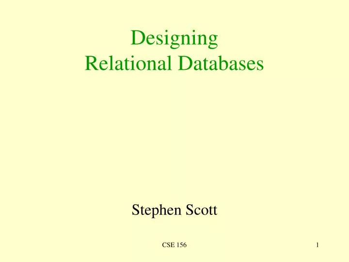 Designing Relational Databases. Stephen Scott. Introduction. Now that we know basic database terminology, it’s time to delve into designing one
