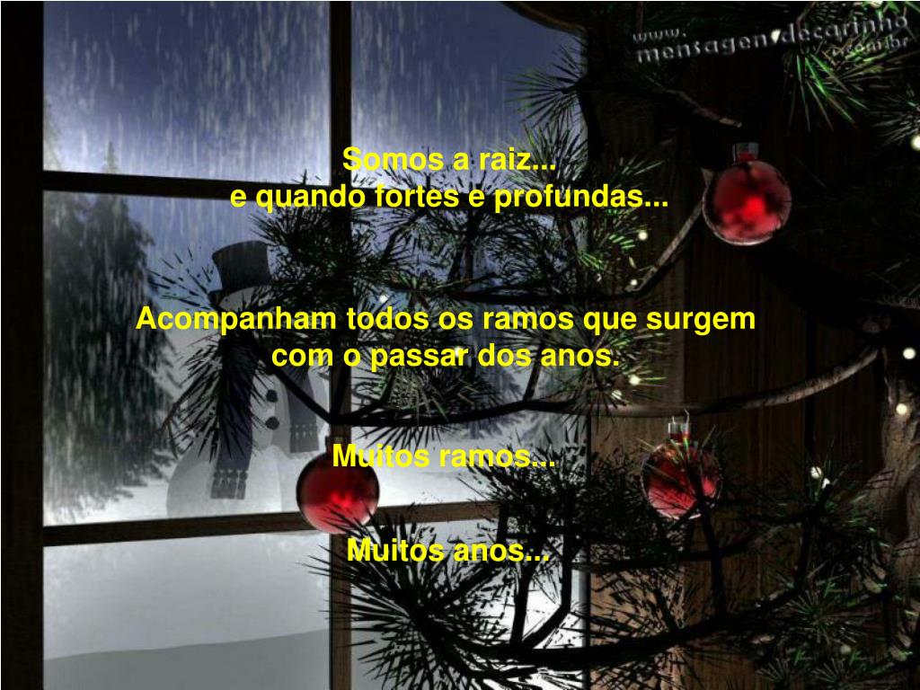 Somos Árvores. Especiais. Música: Silent Night. Transição Automática. Criação: Adolfo Arend. Que neste natal... todos descubram que as famílias são como árvores. Mas, árvores muito especiais. A. As famílias são lindas árvores de natal!!!!. Somos a raiz... e quando fortes e profundas.