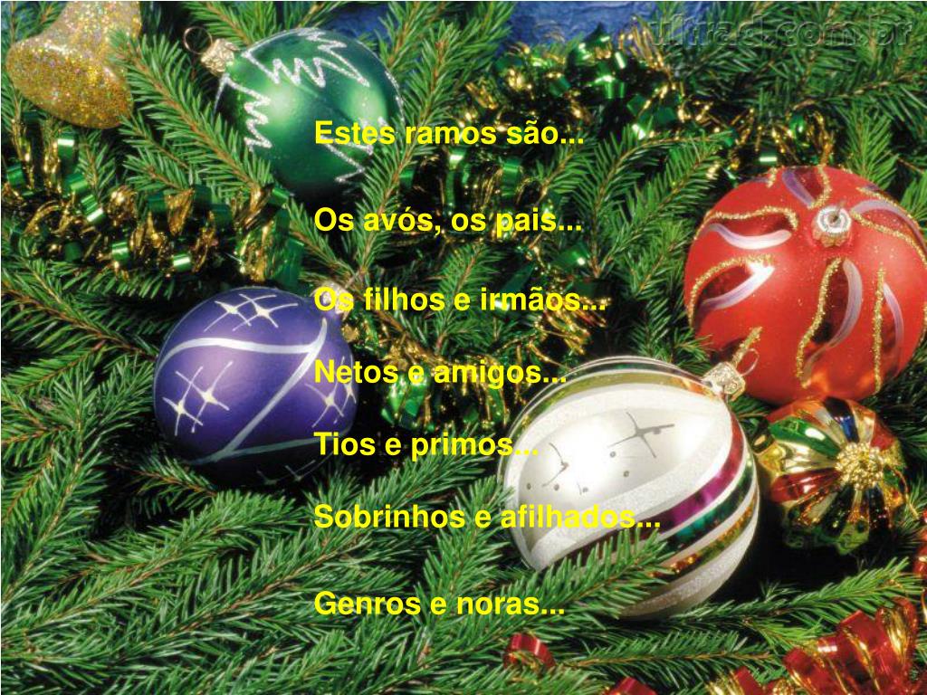 Estes ramos são... Os avós, os pais... Os filhos e irmãos... Netos e amigos... Tios e primos... Sobrinhos e afilhados... Genros e noras...