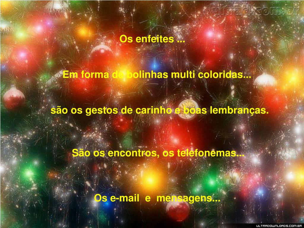 Os enfeites ... Em forma de bolinhas multi coloridas... são os gestos de carinho e boas lembranças. São os encontros, os telefonemas... Os e-mail e mensagens...