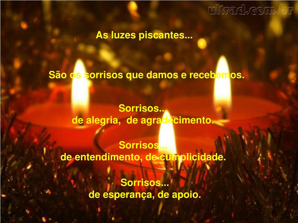 As luzes piscantes... São os sorrisos que damos e recebemos. Sorrisos... de alegria, de agradecimento. Sorrisos... de entendimento, de cumplicidade. Sorrisos... de esperança, de apoio.