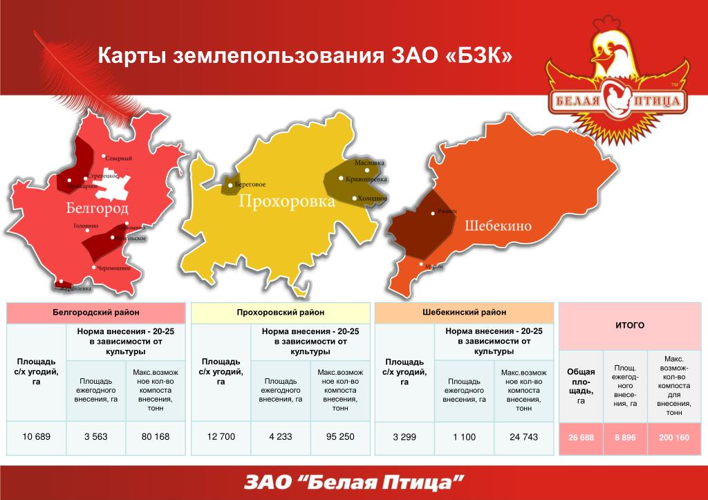 Структурная схема ЗАО «Белая птица» Закрытое акционерное общество «Белая птица» - активный участник приоритетного национального проекта «Развитие АПК». Предприятия Холдинга охватывают большую территорию и расположены в следующих районах Белгородской области: г. Белгород, п. Разумное, Валуйский район, Яковлевский район (с. Кустовое), Шебекинский район, Алексеевский район, Губкинский район. Предприятия Холдинга работают на основе полного производственного цикла. Замкнутый цикл и система контроля качества на каждом из этапов производства, от кормов и переработки до распространения позволяет гарантировать стабильно высокое качество продукта.