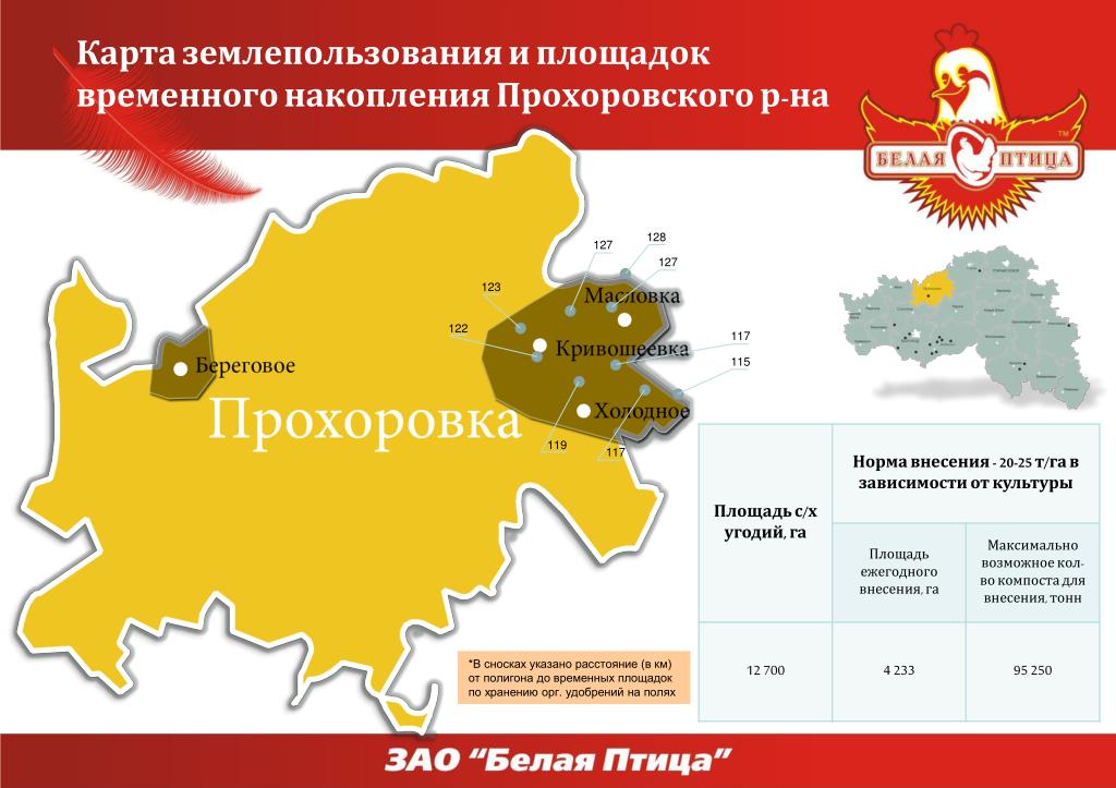 Карта землепользования и площадок временного накопления Прохоровского р-на 128 127 127 123 122 117 115 119 117 *В сносках указано расстояние (в км) от полигона до временных площадок по хранению орг. удобрений на полях