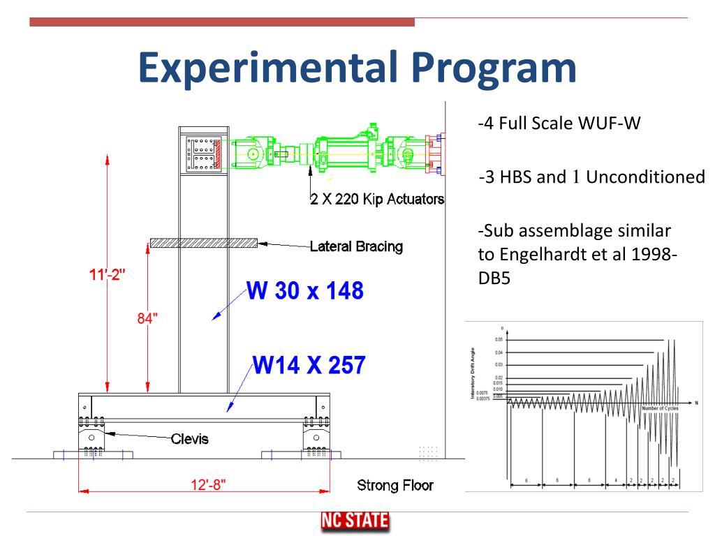 Experimental Program -4 Full Scale WUF-W -3 HBS and 1 Unconditioned -Sub assemblage similar to Engelhardt et al 1998- DB5