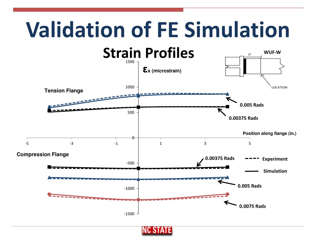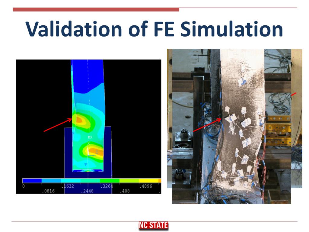 Summary -Heat treatment of beam flanges reduces strength of steel and initiates yielding in the heat treated regions -Uniform heat pattern difficult to achieve with Induction heating, σ-ε response varied from furnace heat treatment -Heavy shear w/supplemental fillet weld to beam web influences local flange buckling -Future experiments are being planned with new heat treatment technique