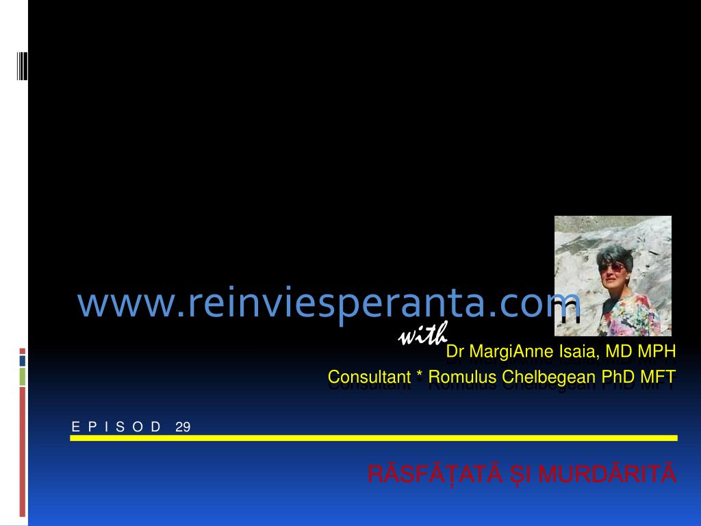 www.reinviesperanta.com with Dr MargiAnne Isaia,MD MPH Consultant * Romulus Chelbegean PhD MFT E P I S O D 29 RĂSFĂȚATĂ ȘI MURDĂRITĂ