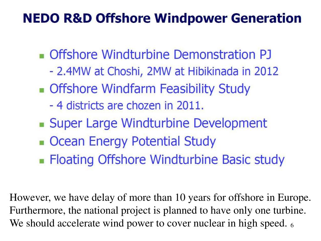 However, we have delay of more than 10 years for offshore in Europe. Furthermore, the national project is planned to have only one turbine. We should accelerate wind power to cover nuclear in high speed.