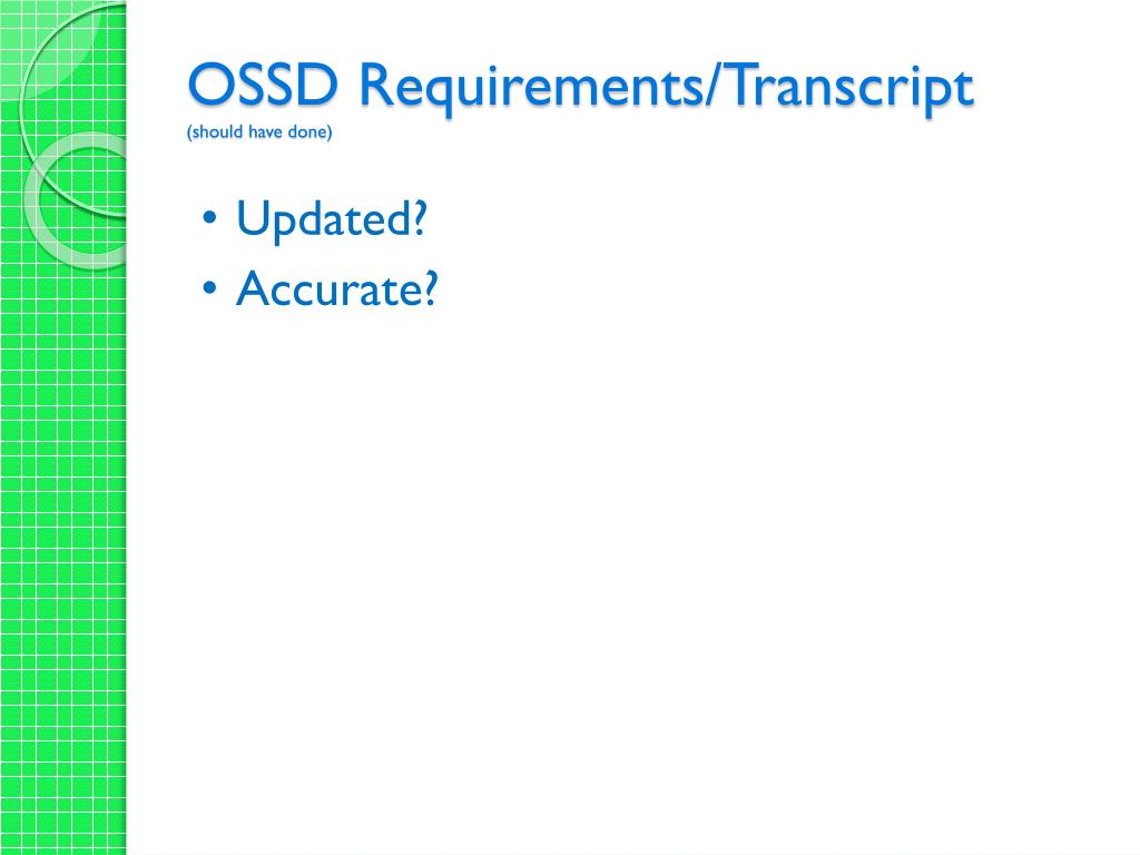 OSSD Requirements/Transcript (should have done) • Updated? • Accurate?