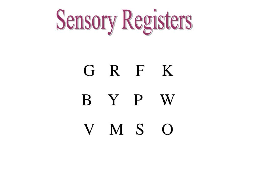 Sensory Registers G R F K B Y P W V M S O