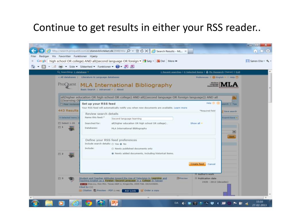 ..canbesaved in many databases Create a profile at ”My Research” - and choose ”Createa My Research account”