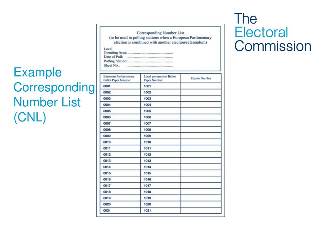Issuing the ballot papers • Marking the register and the CNL • Ask the elector to confirm their name and address • Mark electors’ elector number in the register • Call out the name and elector number of the elector • Enter the elector number on the Corresponding Number List (CNL) • Do NOT write the elector number on the ballot paper!
