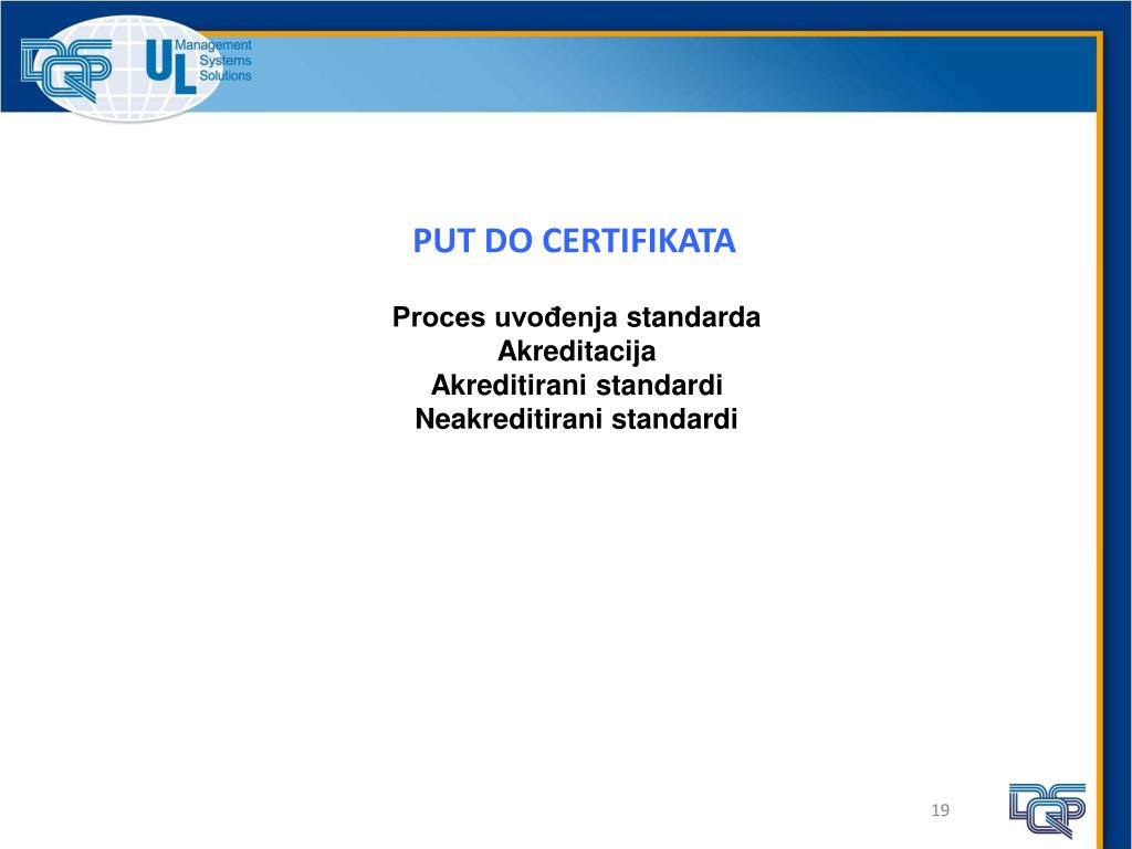 PUT DO CERTIFIKATA Proces uvođenja standarda Akreditacija Akreditirani standardi Neakreditirani standardi