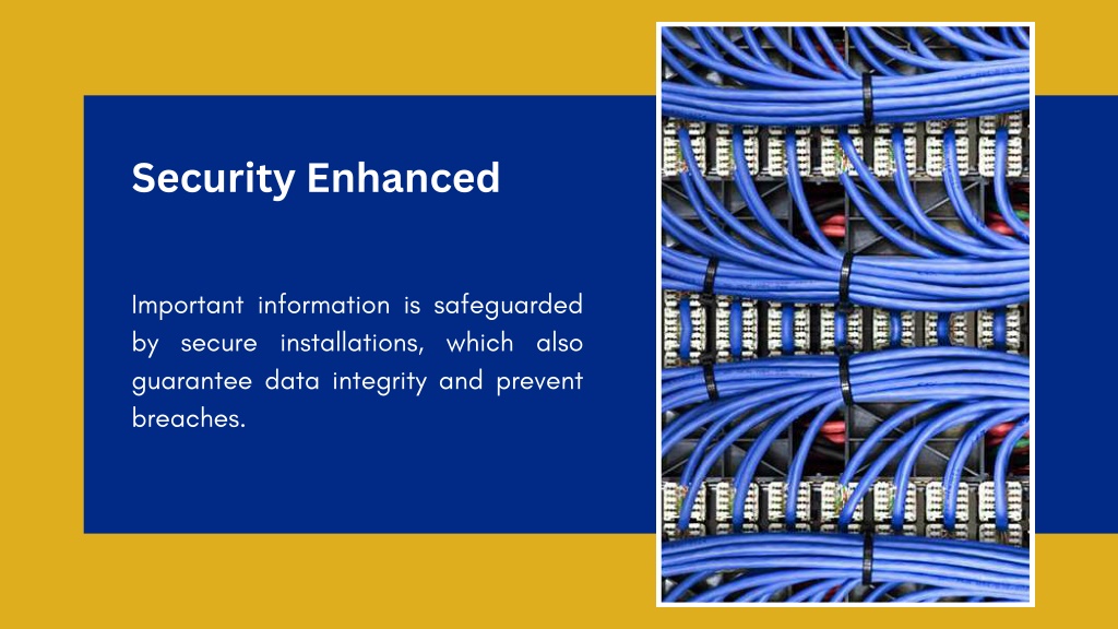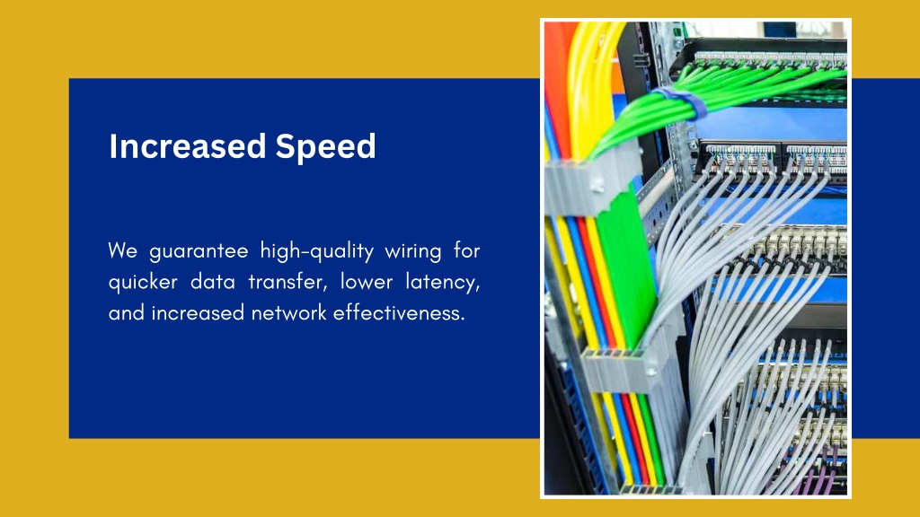 Increased Speed We guarantee high-quality wiring for quicker data transfer, lower latency, and increased network effectiveness.