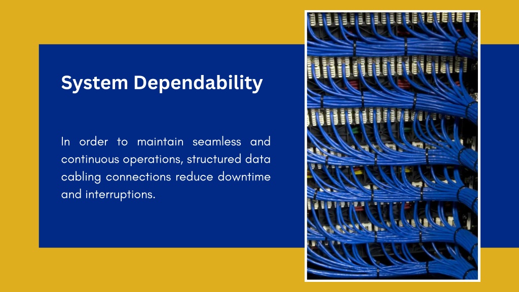 System Dependability In order to maintain seamless and continuous operations, structured data cabling connections reduce downtime and interruptions.