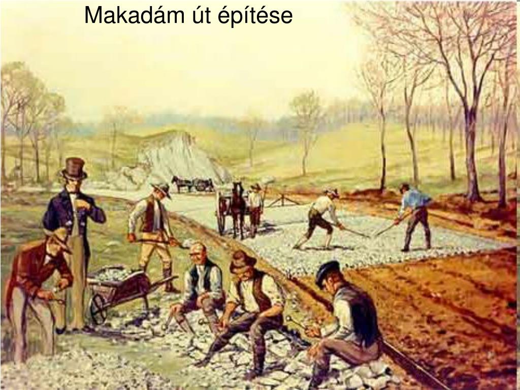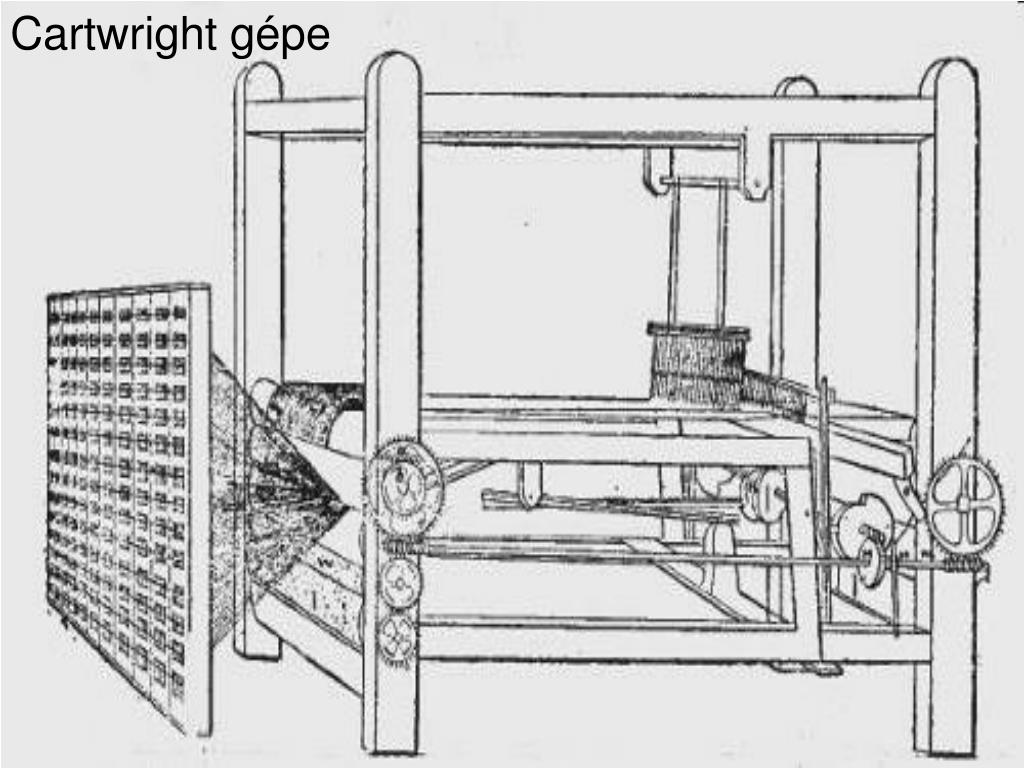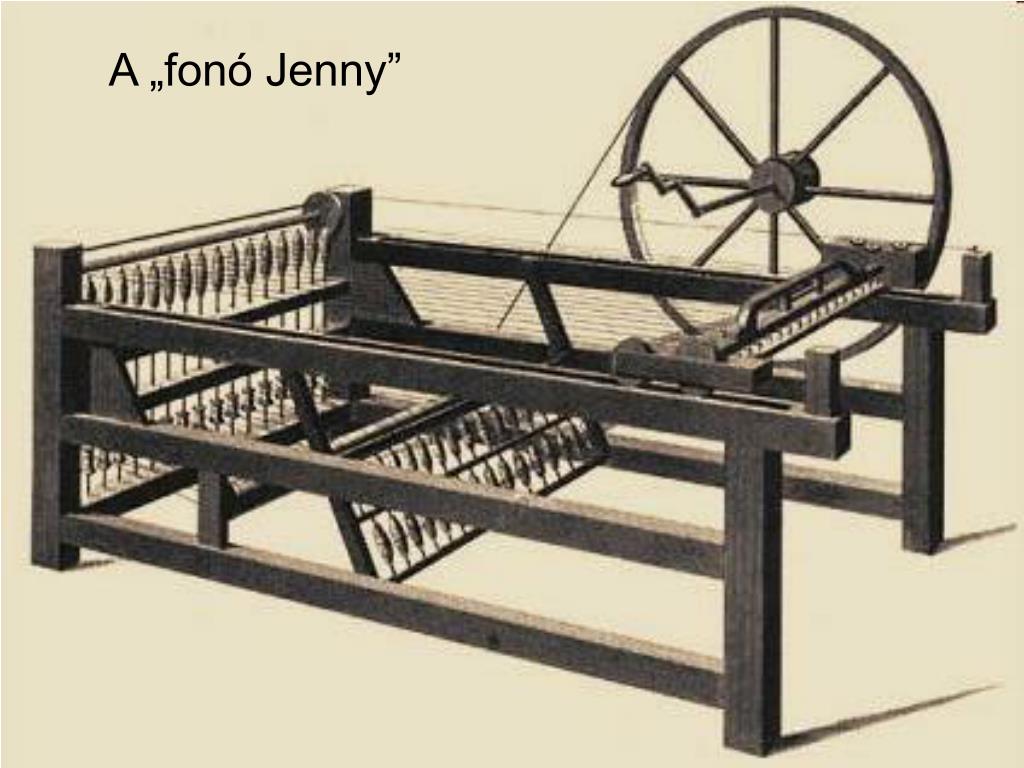 Ipari találmányok • James Watt: gőzgép 1769 • Hargraeves: „Fonó Jenny” • Cartwright - gépi szövőszék 1784 • MacAdam: makadám út kialakítása • Fulton: gőzhajó 1807 • Stephenson: gőzmozdony 1825 • Maudslay: vas esztergagép 1810