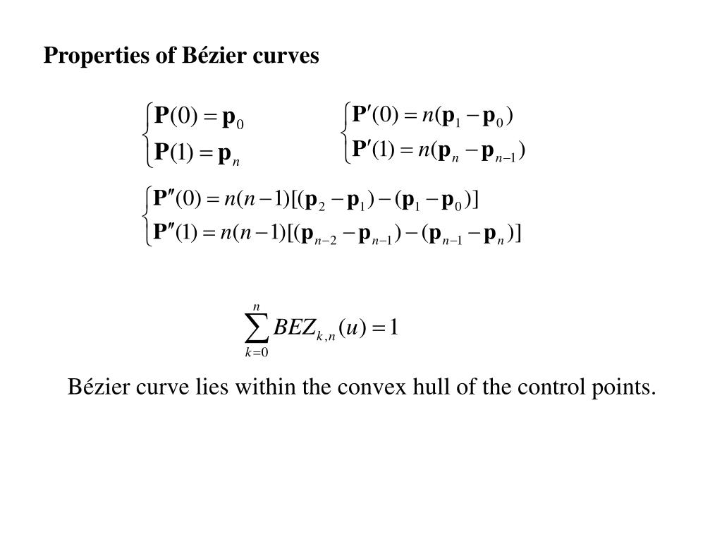 Properties ofBézier curves Bézier curve lies within the convex hull of the control points.