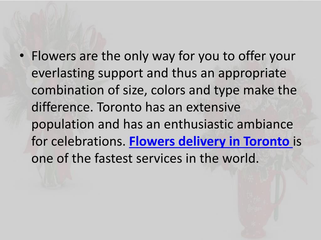 Flowers are the only way for you to offer your everlasting support and thus an appropriate combination of size, colors and type make the difference. Toronto has an extensive population and has an enthusiastic ambiance for celebrations. Flowers delivery in Torontois one of the fastest services in the world.