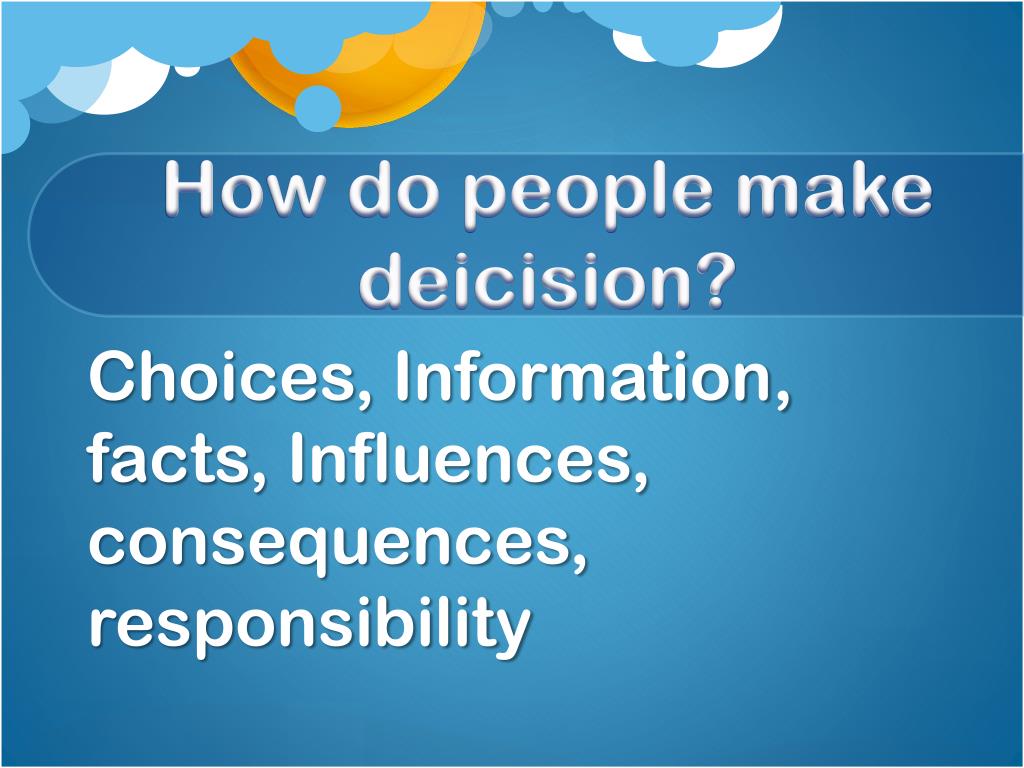 How do people make deicision? Choices, Information, facts, Influences, consequences, responsibility