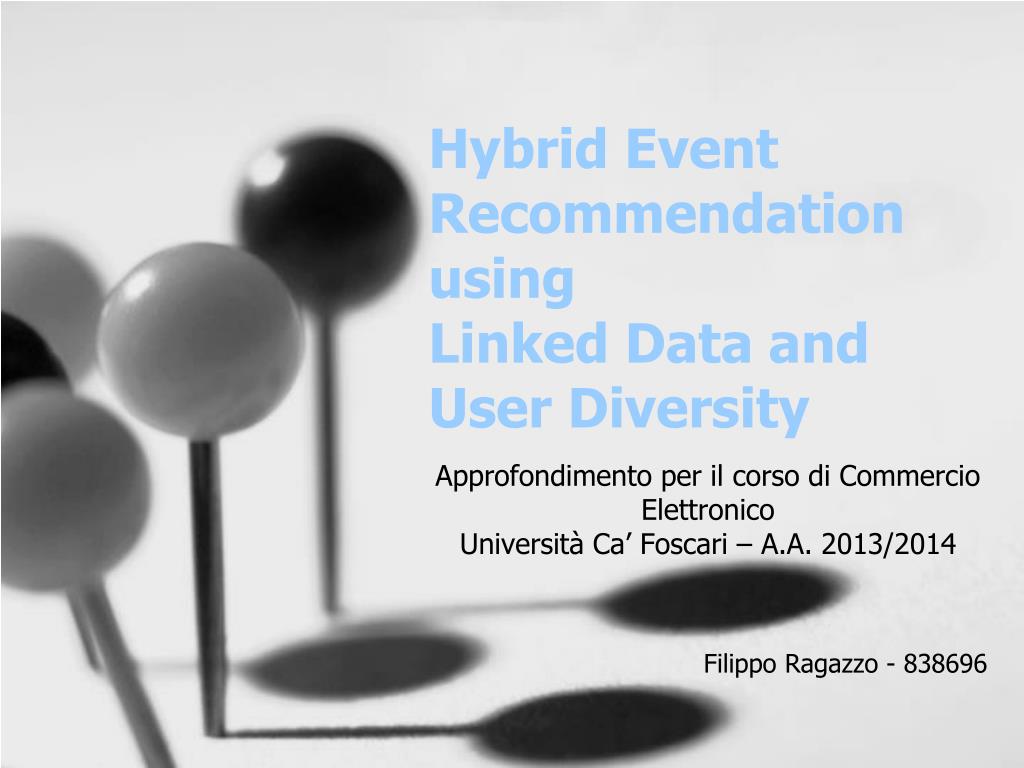 HybridEventRecommendationusingLinked Data and User Diversity Approfondimento per il corso di Commercio ElettronicoUniversità Ca’ Foscari – A.A. 2013/2014 Filippo Ragazzo - 838696