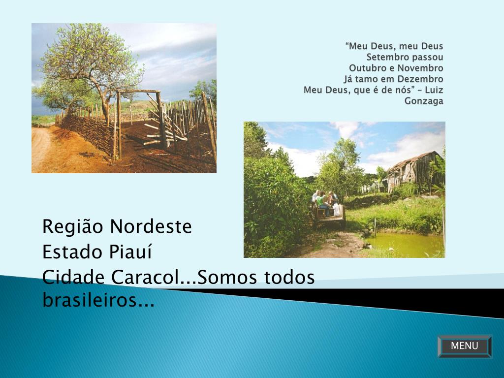 Somos todos brasileiros. MENU. Apresentação Inicial. “Meu Deus, meu Deus Setembro passou Outubro e Novembro Já tamo em Dezembro Meu Deus, que é de nós” – Luiz Gonzaga. Região Nordeste Estado Piauí Cidade Caracol...Somos todos brasileiros. MENU. Região Nordeste .