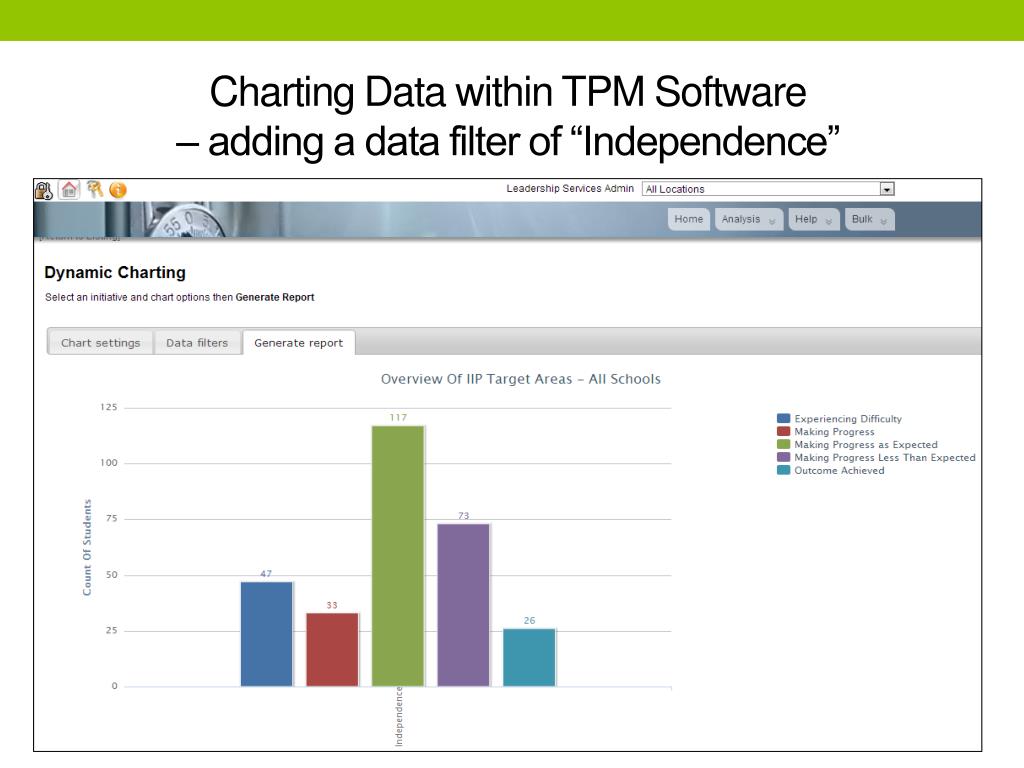 Charting Data within TPM Software – adding a data filter of “Independence”