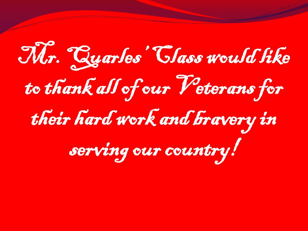 Mr. Quarles’ Class would like to thank all of our Veterans for their hard work and bravery in serving our country!