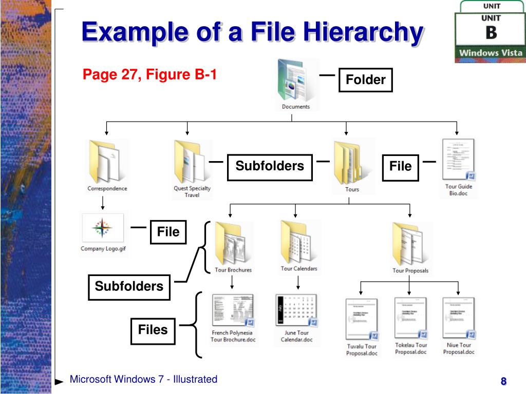 Subfolders Subfolders Files Example of a File Hierarchy Page 27, Figure B-1 Folder File File Microsoft Windows 7 - Illustrated