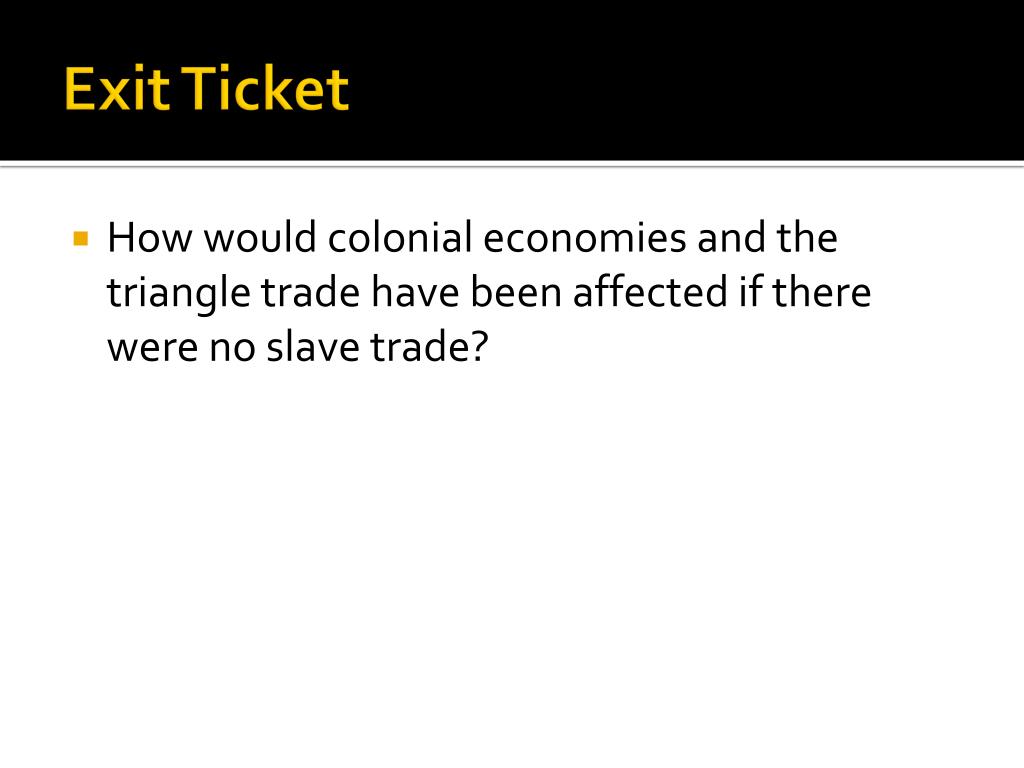 Exit Ticket • How would colonial economies and the triangle trade have been affected if there were no slave trade?
