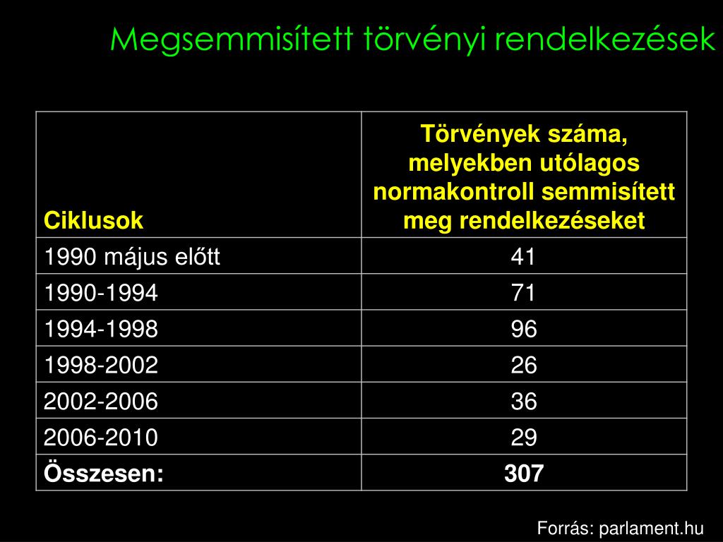 Megsemmisített törvényi rendelkezések Forrás: parlament.hu