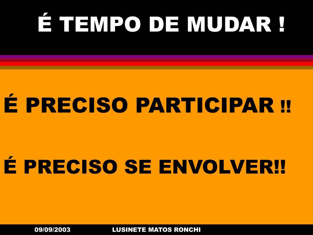 É TEMPO DE MUDAR ! É PRECISO PARTICIPAR !! É PRECISO SE ENVOLVER!! LUSINETE MATOS RONCHI