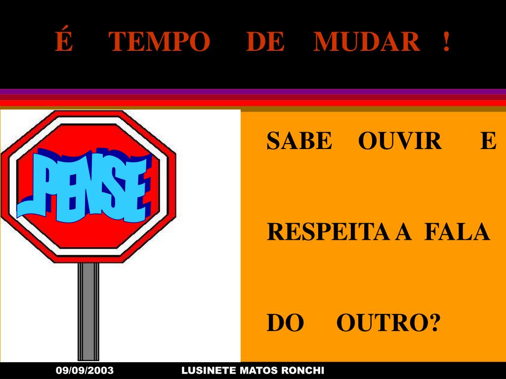 É TEMPO DE MUDAR ! SABE OUVIR E RESPEITA A FALA DO OUTRO? ...PENSE LUSINETE MATOS RONCHI