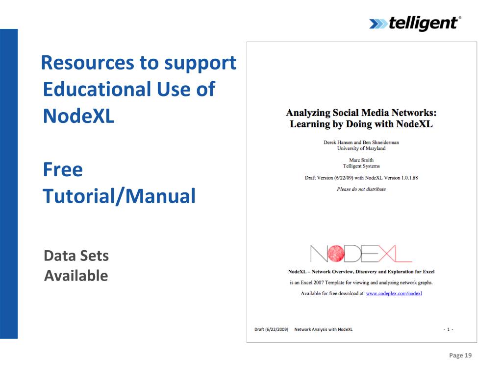 Resources to supportEducational Use ofNodeXLFree Tutorial/Manual Data SetsAvailable