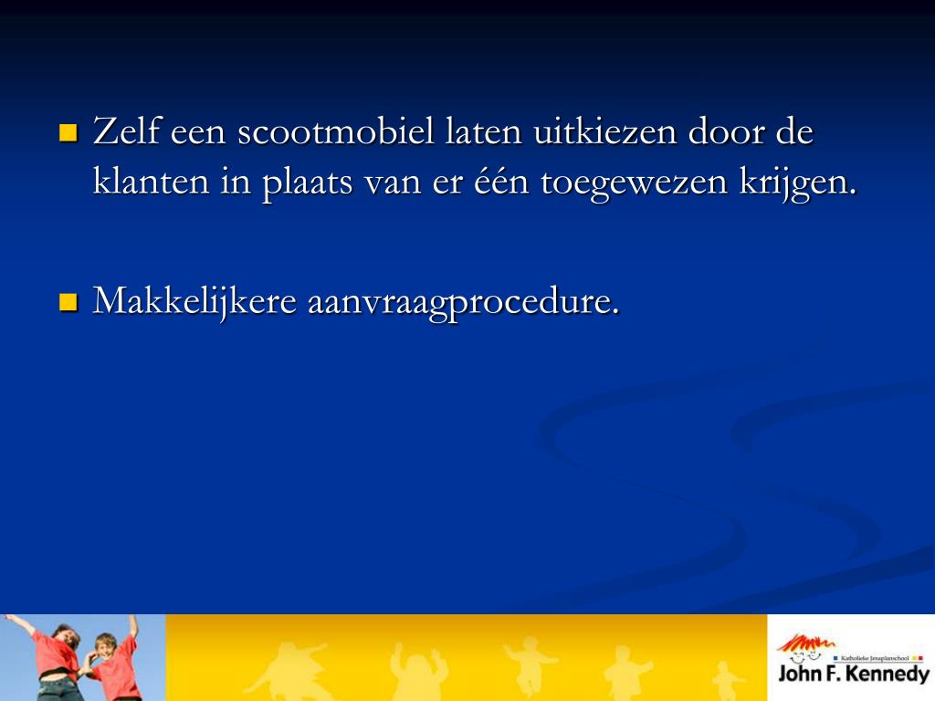 Zelf een scootmobiel laten uitkiezen door de klanten in plaats van er één toegewezen krijgen. Makkelijkere aanvraagprocedure.