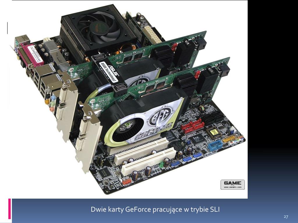 Podział kart graficznych • Karty graficzne pracujące jako oddzielne układy • Karty graficzne zintegrowane z płytą główną