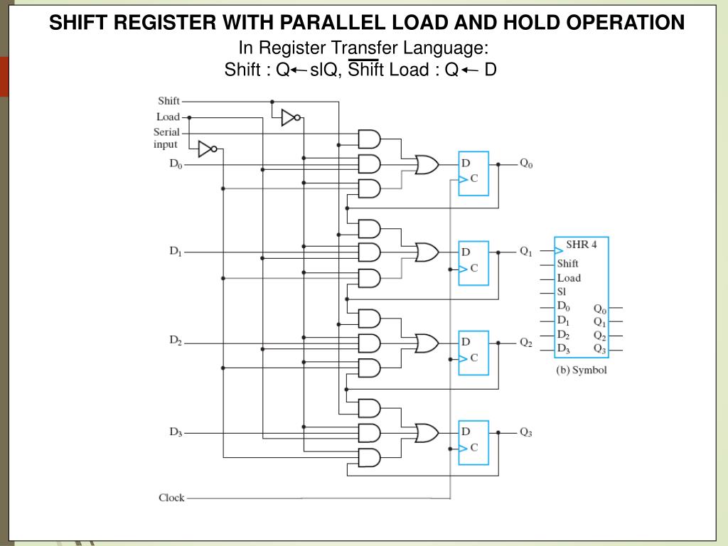In Register Transfer Language: Shift : Q slQ, Shift Load : Q D SHIFT REGISTER WITH PARALLEL LOAD AND HOLD OPERATION