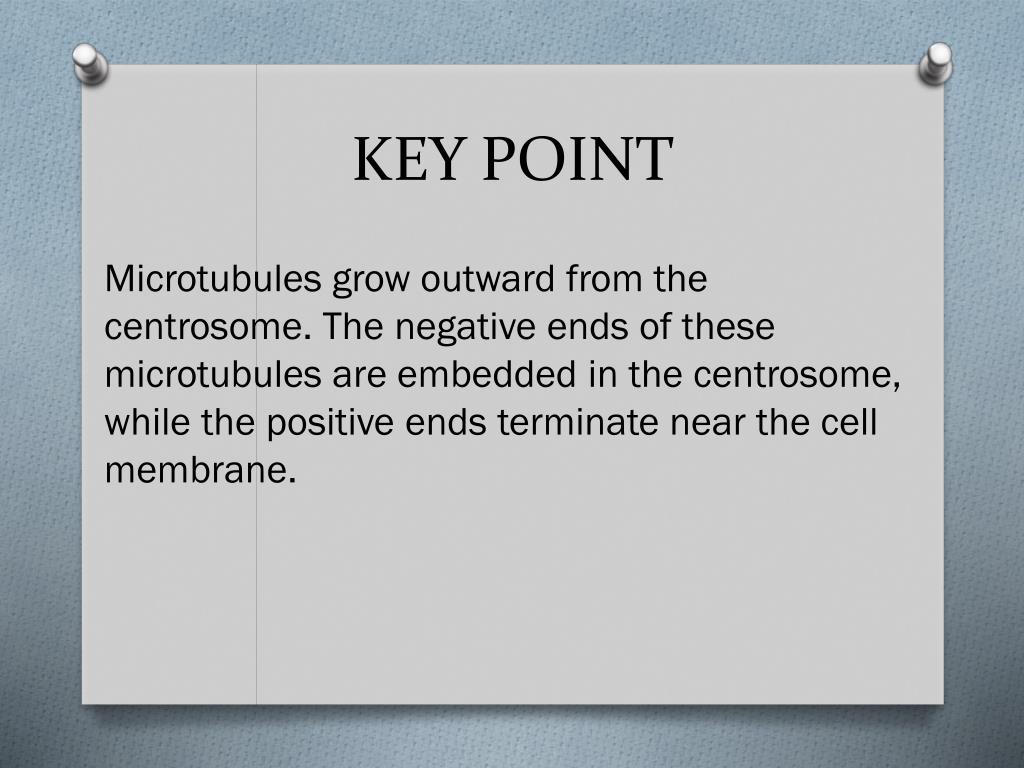 KEY POINT Microtubules grow outward from the centrosome. The negative ends of these microtubules are embedded in the centrosome, while the positive ends terminate near the cell membrane.