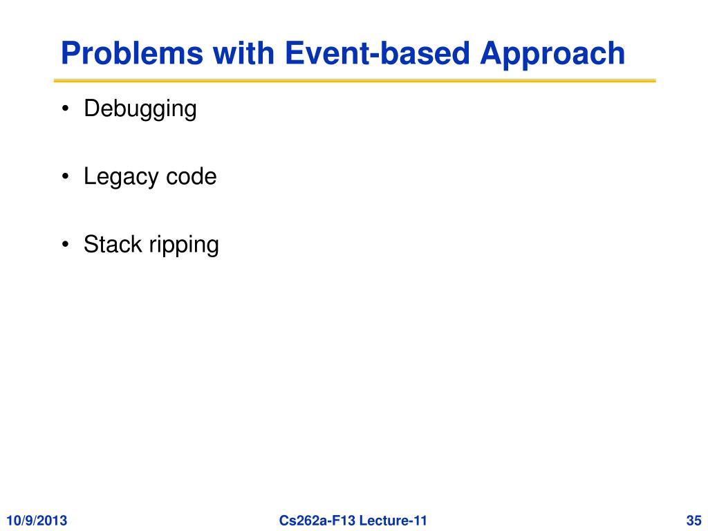Problems with Event-based Approach • Debugging • Legacy code • Stack ripping