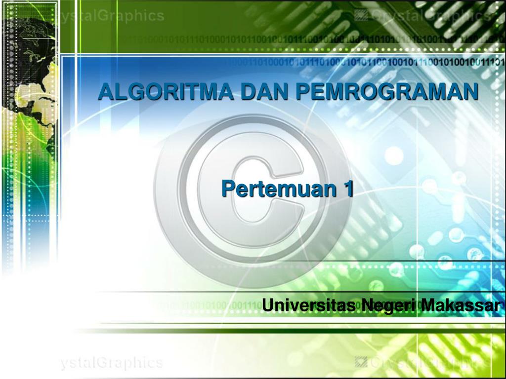ALGORITMA DAN PEMROGRAMAN Pertemuan 1. Universitas Negeri Makassar. Pengertian Algoritma dan Pemrograman. A lgoritma adalah sekumpulan langkah-langkah atau instuksi‑instruksi yang terbatas untuk menyelesaikan suatu permasalahan .