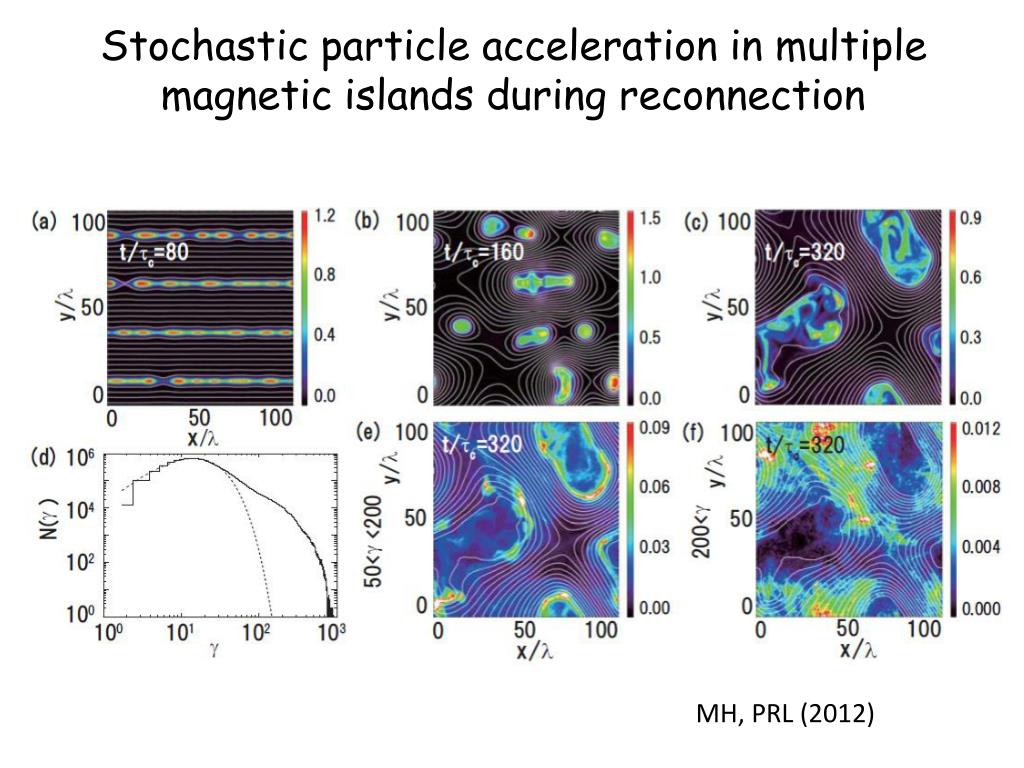 Stochastic particle acceleration in multiple magnetic islands during reconnection MH, PRL (2012)