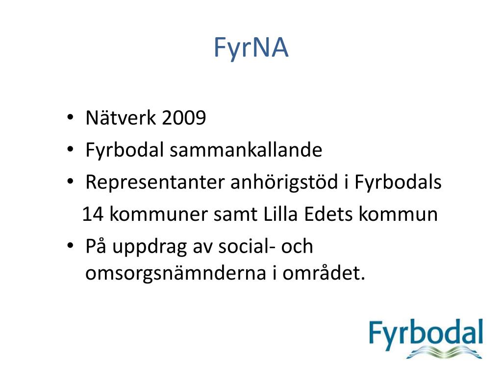 FyrNA • Nätverk 2009 • Fyrbodal sammankallande • Representanter anhörigstöd i Fyrbodals 14 kommuner samt Lilla Edets kommun • På uppdrag av social- och omsorgsnämnderna i området.