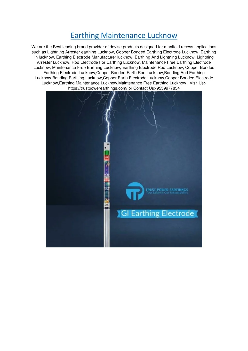 Earthing Maintenance Lucknow We are the Best leading brand provider of devise products designed for manifold recess applications such as Lightning Arrester earthing Lucknow, Copper Bonded Earthing Electrode Lucknow, Earthing In lucknow, Earthing Electrode Manufacturer lucknow, Earthing And Lightning Lucknow, Lightning Arrester Lucknow, Rod Electrode For Earthing Lucknow, Maintenance Free Earthing Electrode Lucknow, Maintenance Free Earthing Lucknow, Earthing Electrode Rod Lucknow, Copper Bonded Earthing Electrode Lucknow,Copper Bonded Earth Rod Lucknow,Bonding And Earthing Lucknow,Bonding Earthing Lucknow,Copper Earth Electrode Lucknow,Copper Bonded Electrode Lucknow,Earthing Maintenance Lucknow,Maintenance Free Earthing Lucknow . Visit Us:- https://trustpowerearthings.com/ or Contact Us:-9559977834