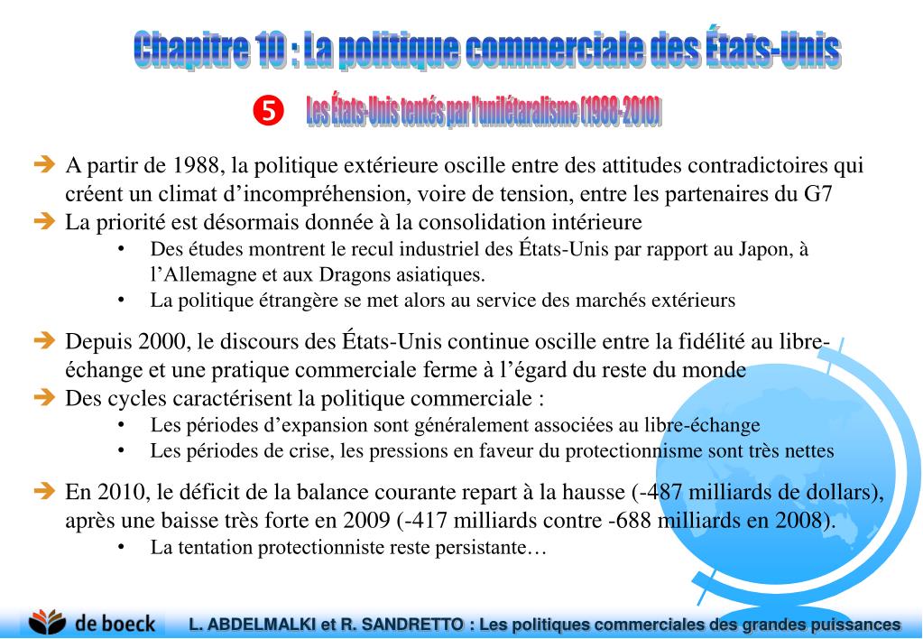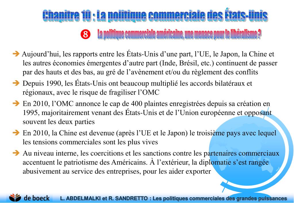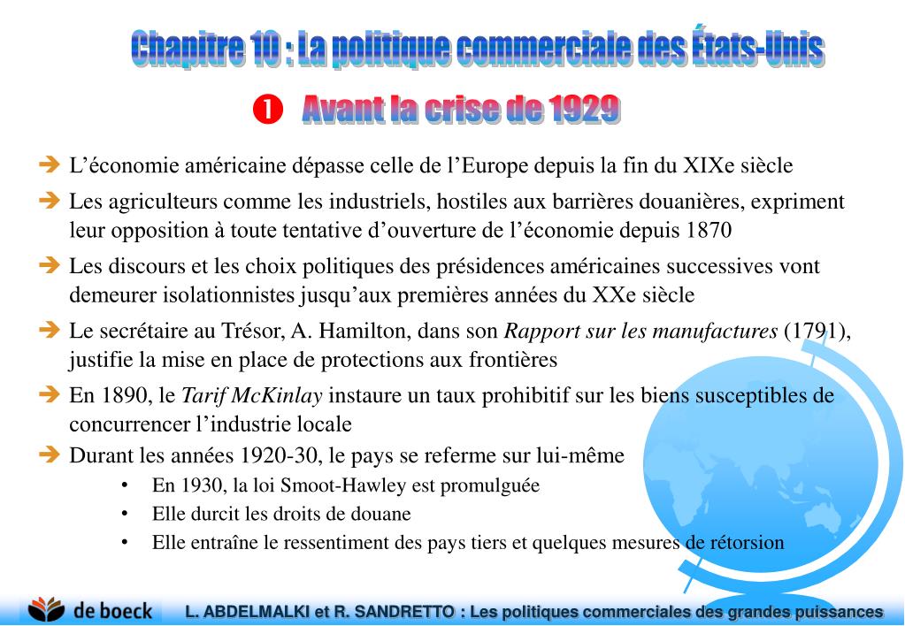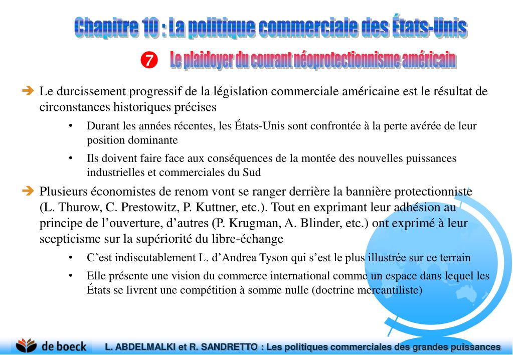 Politiques commerciales des grandes puissances La tentation du néoprotectionnisme LahsenAbdelmalki René Sandretto Chapitre 10 La politique commerciale des États-Unis