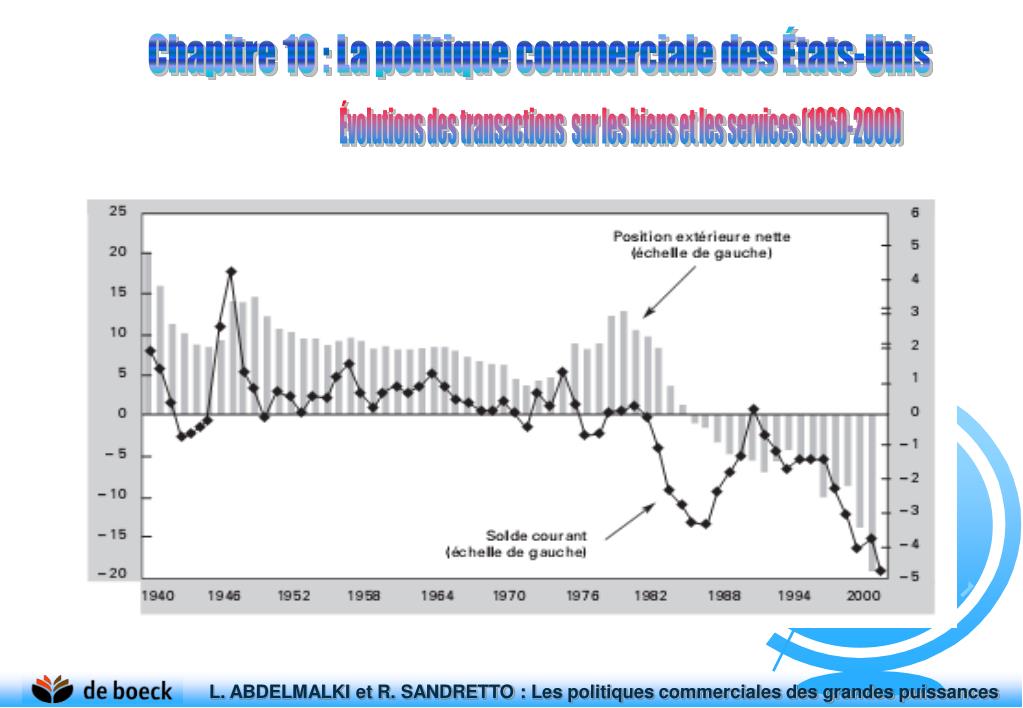 Chapitre 10 : La politique commerciale des États-Unis Évolutions des transactions sur les biens et les services (1960-2000) L. ABDELMALKI et R. SANDRETTO : Les politiques commerciales des grandes puissances